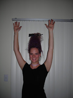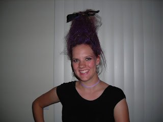 Yes, this is my hair. Yes, it is standing straight up. Yes, there is something under there (a cup!). Yes, I sprayed it purple (EEK!!!!)