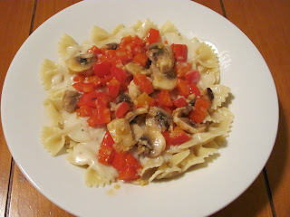 Bowties with Homemade Sauce, Tomatoes and Mushrooms