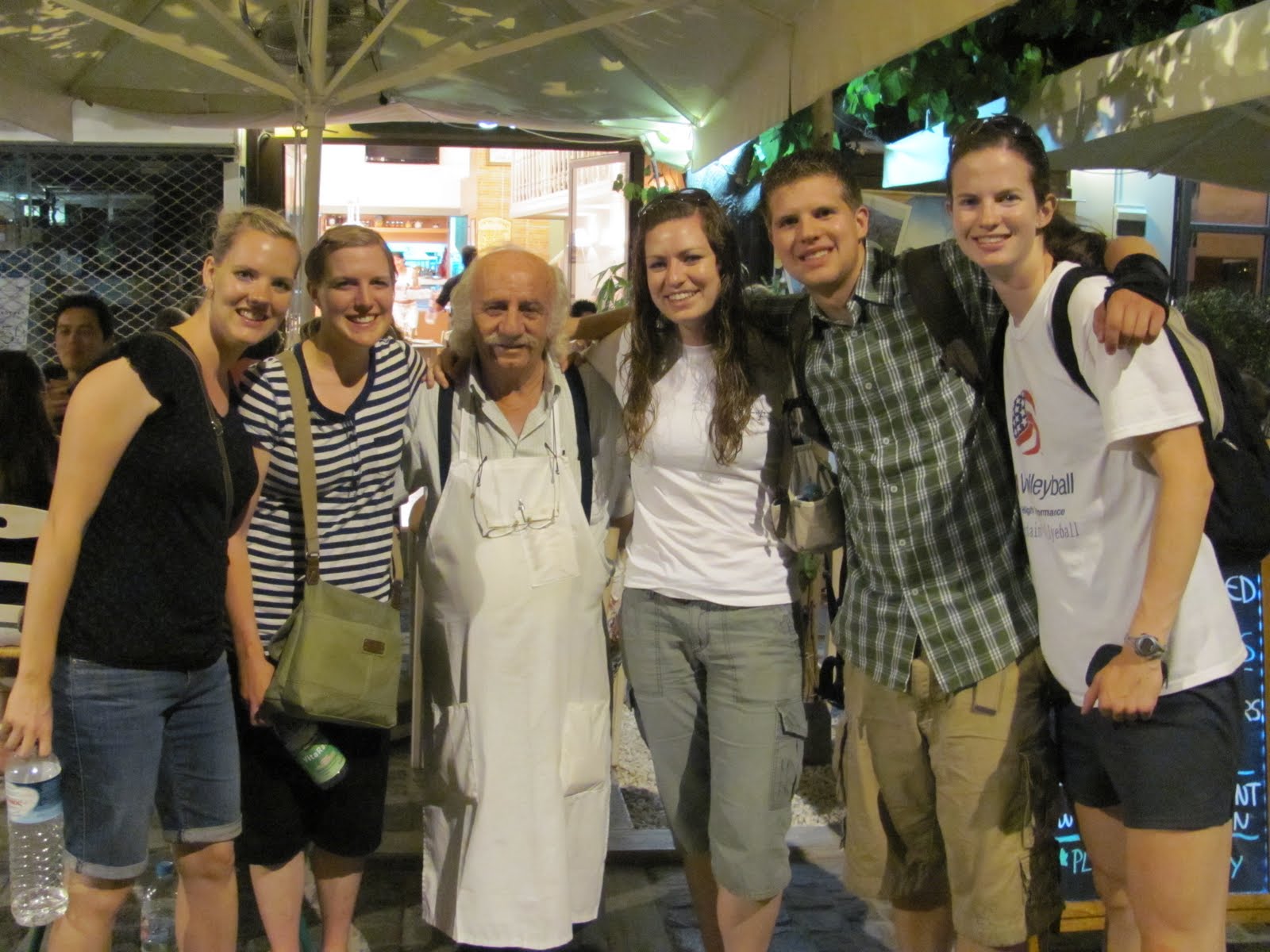 This sweet old man herded us off the street and into Gods’ Restaurant. I imagine he’s the owner… and somehow he seems like a perfect image to represent his restaurant. This is our island/dinner group of me, Sarah, Jen, Riley, and Miranda.