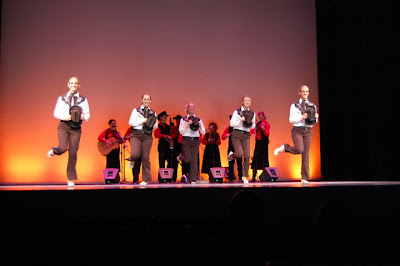 We did this dance a few times on tour, once in Athens and at least once, maybe twice in Istanbul. What you see below is the final pose from our Athens show. What you do not see in this picture is how bad the dance was! Our band, much as we love them, never once played this song correctly on tour. Here at our Athens show I could tell the music was getting off and subsequently it threw off my dancing. Having only learned this dance last year, I tend to cue off the music for certain parts. Not being able to do so resulted in some extremely mushy footwork on my part, most likely a strained smile, and my fabulous ending pose.