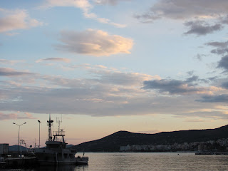 Dinner came after many hours of driving– it was probably around 8 or later when we stopped– in a beautiful coastal town whose name I didn’t write down.