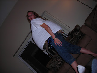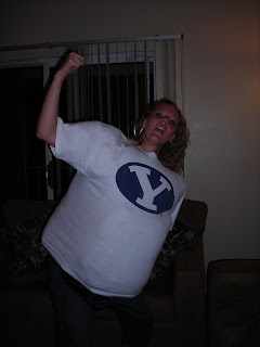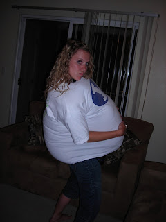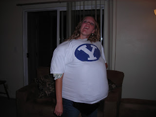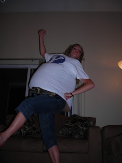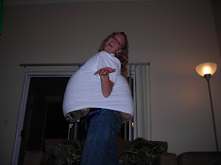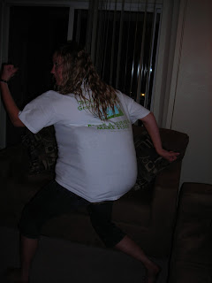 This happened one night in 2008. Thanks, Kristen, for playing photographer. I had won a massively large shirt and for some reason felt possessed to make it fit.