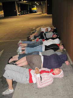 About 4:15 am. Tuckered out homeless Americans sleeping on cardboard (the lucky ones) and nasty sidewalk. And “sleeping” is a relative term. |