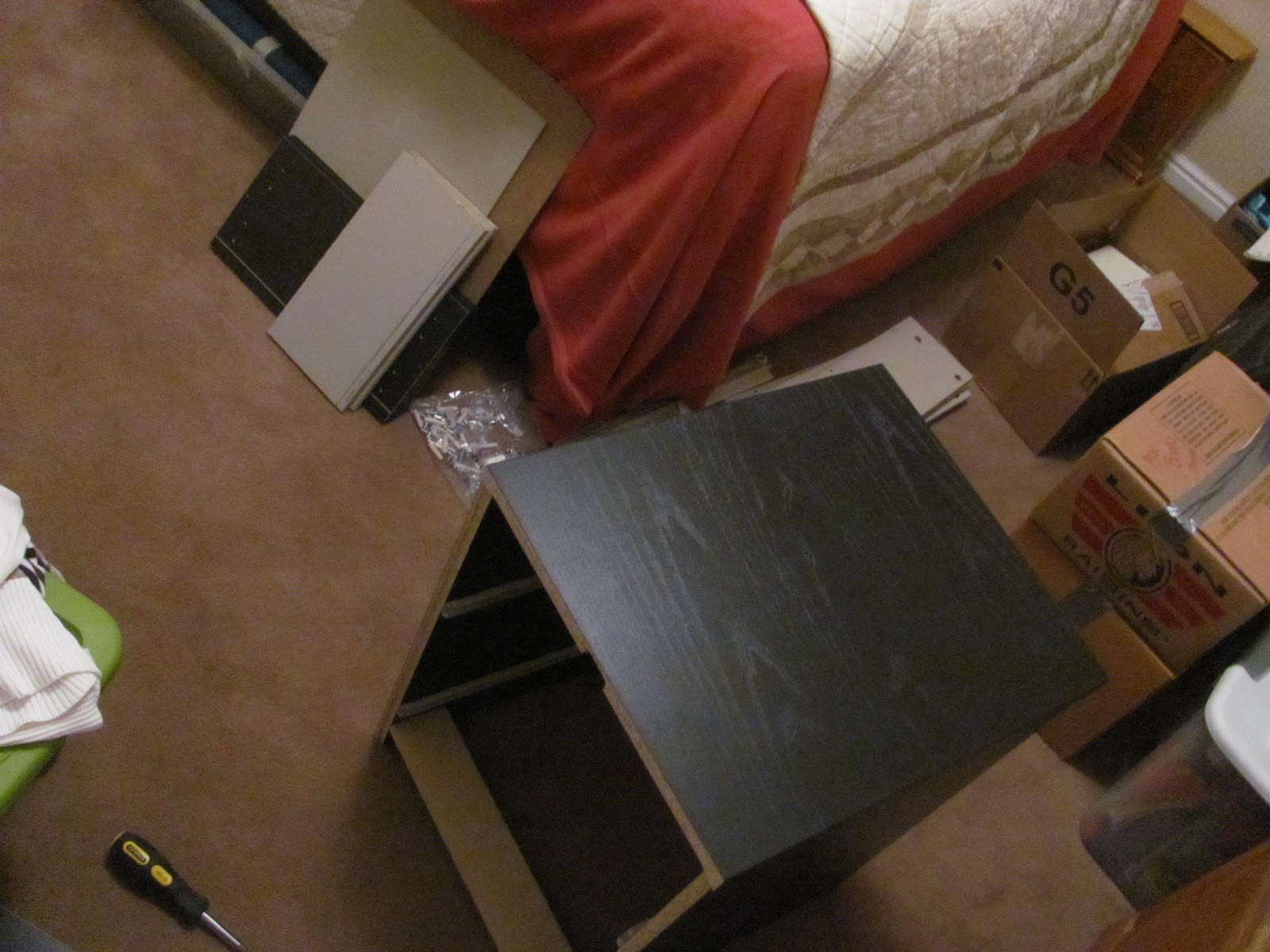 At 25, nearing yet another birthday, I believe I have proved that I have limited use for a man in my life. My latest reason? Building stuff. Men are generally attributed to be the handy ones, their engineering minds able to masterfully change piles of wood and screws into fine pieces of furniture. Well you know what? I can do it too! I built all my furniture and mounted a mirror on my wall, too! I still have to mount pictures, but… one step at a time. It’s taken me rather a while to get things put together to this level.