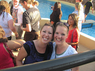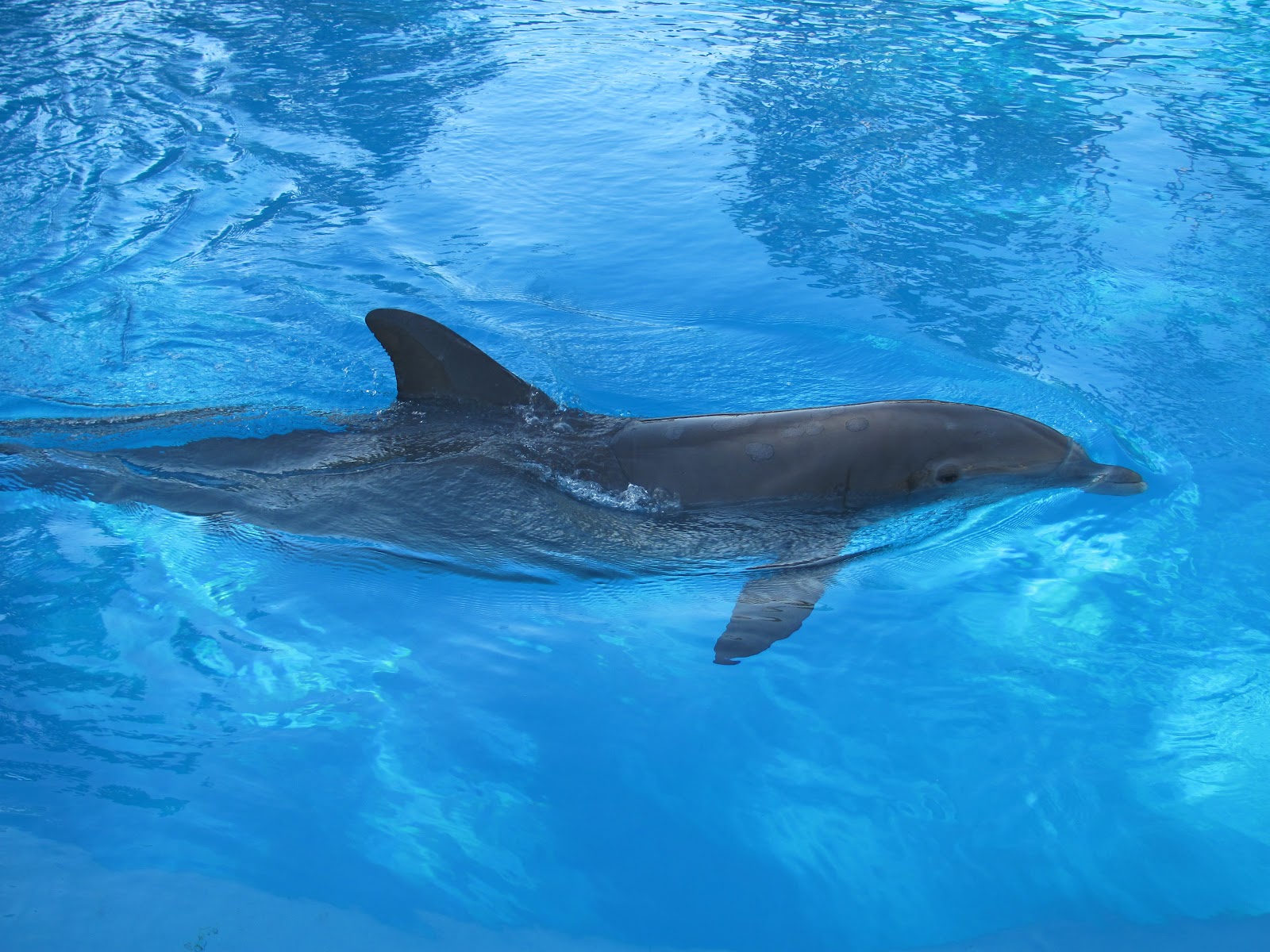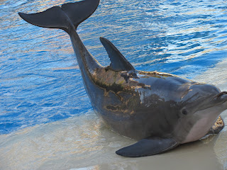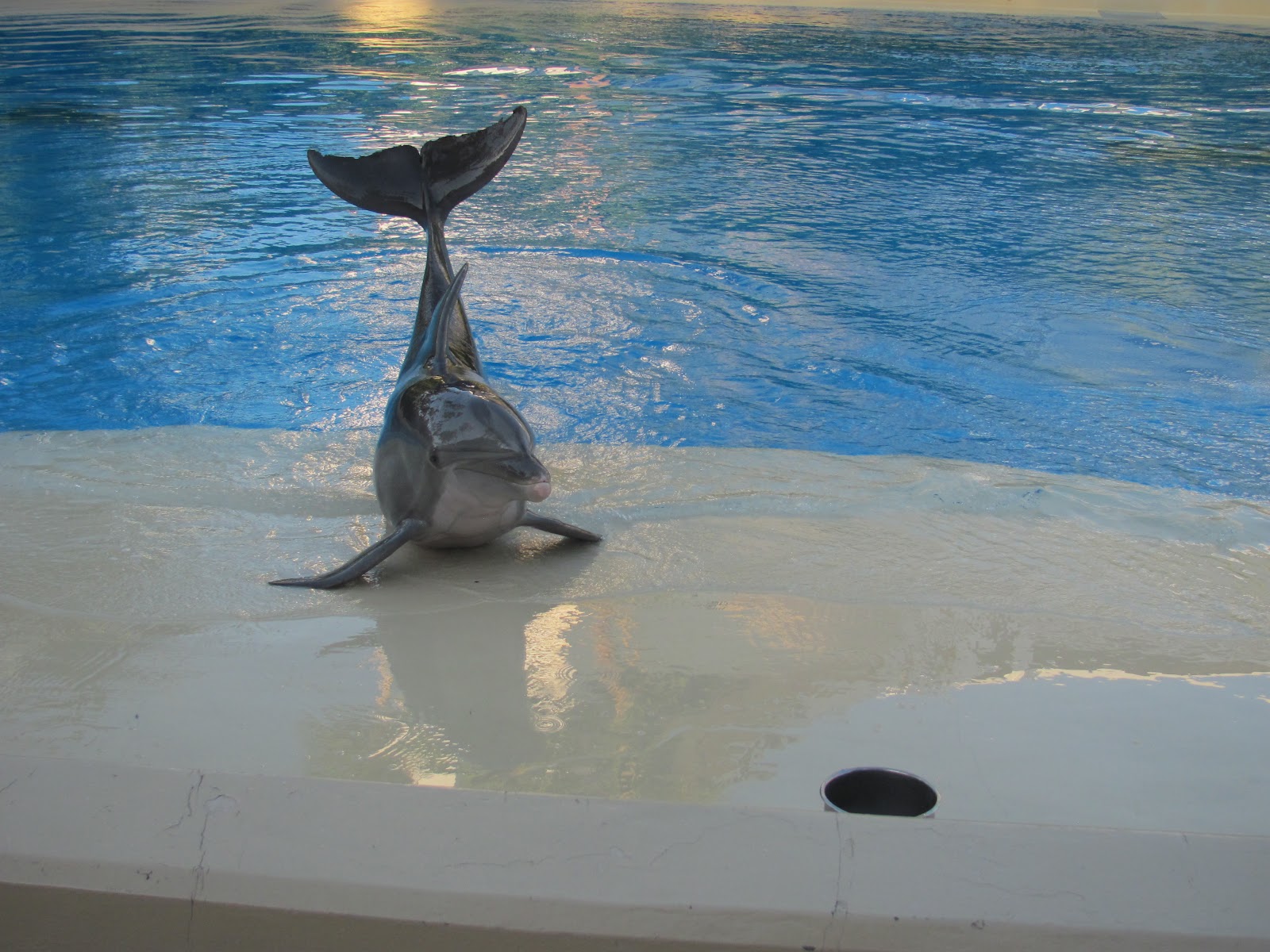 Now you may be wondering why there are four trainers at the dolphin pool. They could just be bored. Or, they could be working to keep the dolphins calm after a rather large guest managed to fall over the retaining wall and into the tank! And considering the standing ledge on the pool side of the low wall, it’s kind of miraculous that she managed to actually fall in the water.