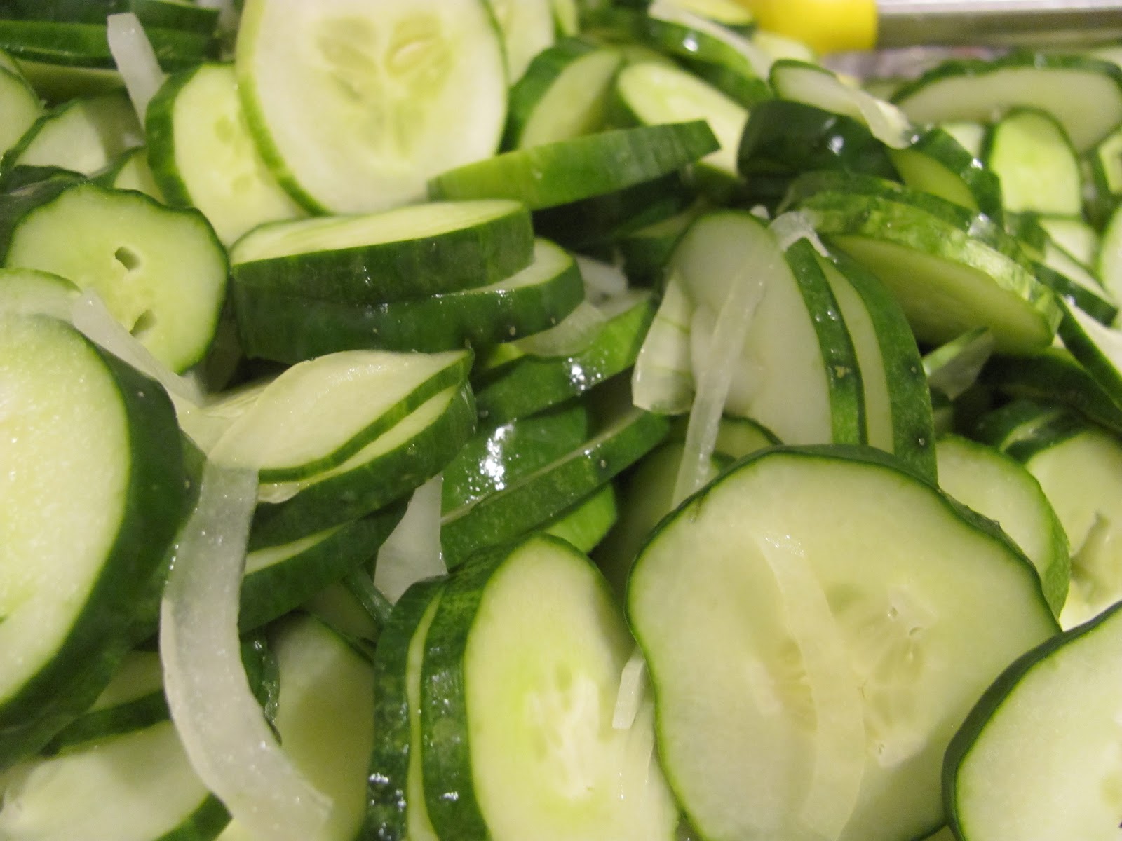 My sliced cucumbers and onions soaking in salt. It does something to help make them pickles.. draining excess liquid out perhaps?