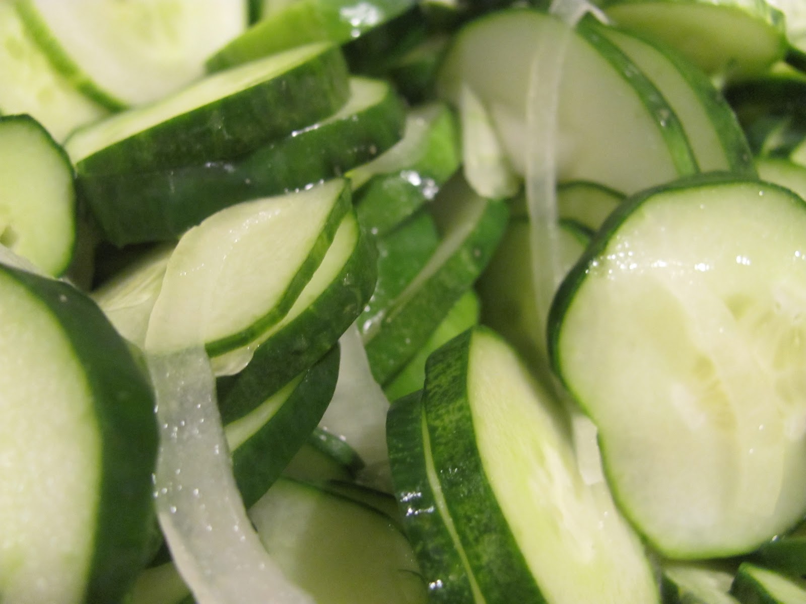 So while the parents were off galavanting in London, I was working hard at home to keep the garden going! We had a rash of cucumbers come on and one Saturday night I felt possessed to make pickles. Thankfully, I had enough sense to make the easy freezer pickles, not the more elaborate heat-canned variety.