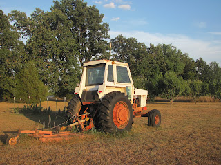 Another shot of our tractor with the orchard in the background.